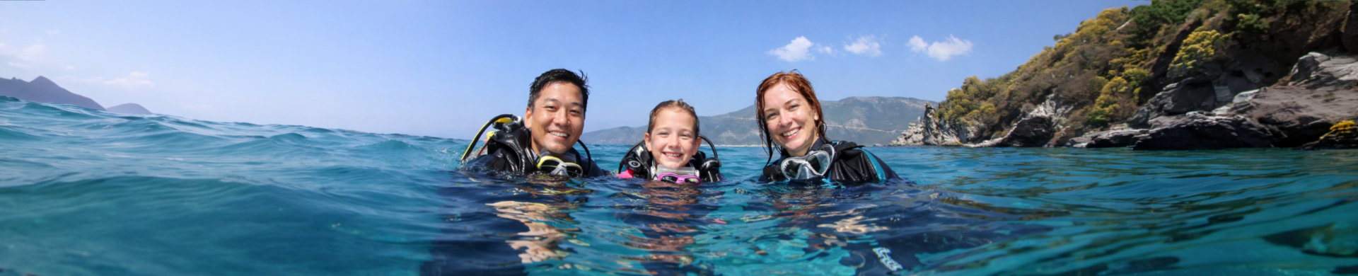 An afternoon’s complete introduction to scuba diving for beginners or those wanting to refresh any existing knowledge. Starts with a full safety briefing and a thorough introduction to the equipment before donning wetsuits and heading out on the dive boat. Depending on weather conditions you’ll be going to one of the preferred beginner diving spots outside Vassiliki bay where you’ll wade out from the beach getting used to breathing underwater in shallow water before venturing out a little further and taking your first proper dive! George’s team will be giving personal instruction and making sure everyone is comfortable, especially kids, although usually they grasp the principles even quicker than their parents!